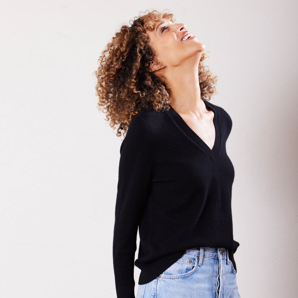 Our designers spend months perfecting each sweater, examining every detail from the weight of the cashmere to the precision of each stitch. We begin by sourcing the highest grade, ethically-sourced cashmere, then focus on silhouettes that are timeless yet modern - shapes that flatter multiple body types and can be seamlessly styled across different contexts.